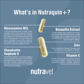 The Nutraquin+ is a brilliant product. It has helped my old, retired greyhound beyond belief ( I wonder if maybe I should be taking them as well!).